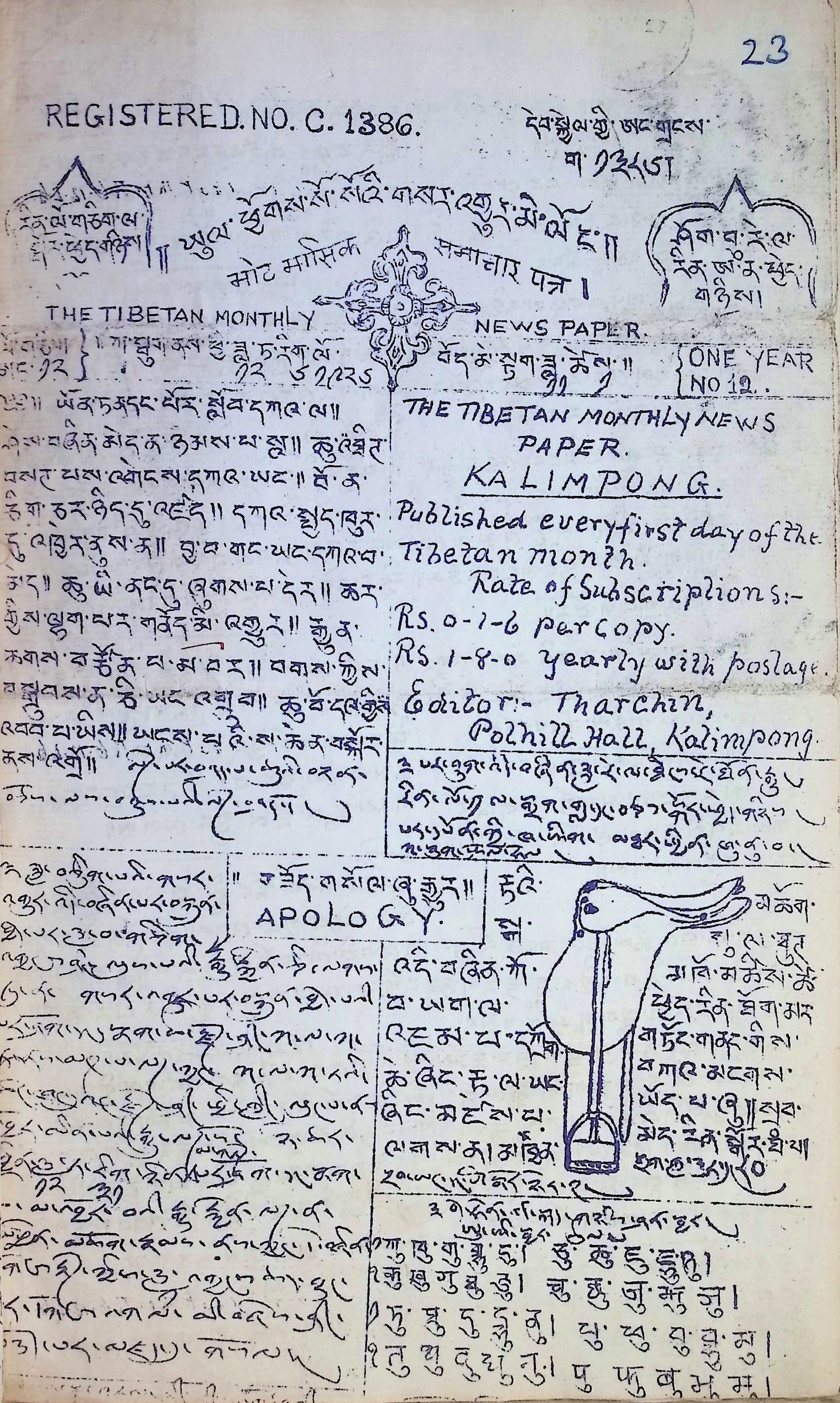 Started as a Tibetan language chronicle of world events, by the 1950's became a vehicle for the fight for Tibetan freedom from the Chinese invasion and occupation. By the early 1960's, with financial troubles that never seemed to end, Tharchin ceased the publication in 1963 and died in 1976.