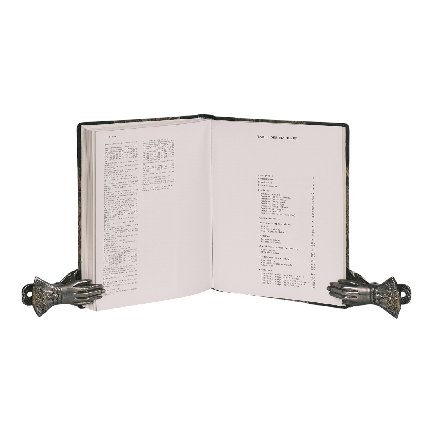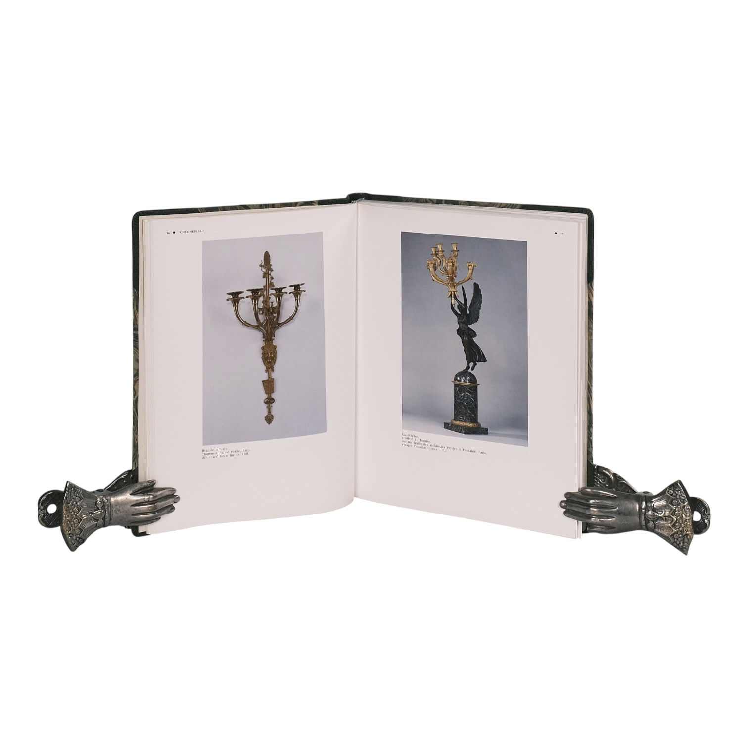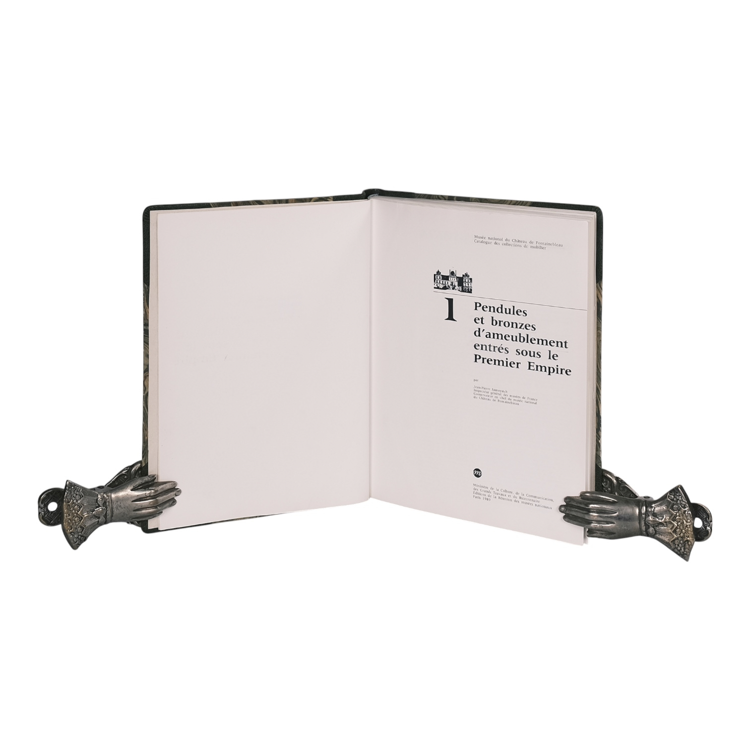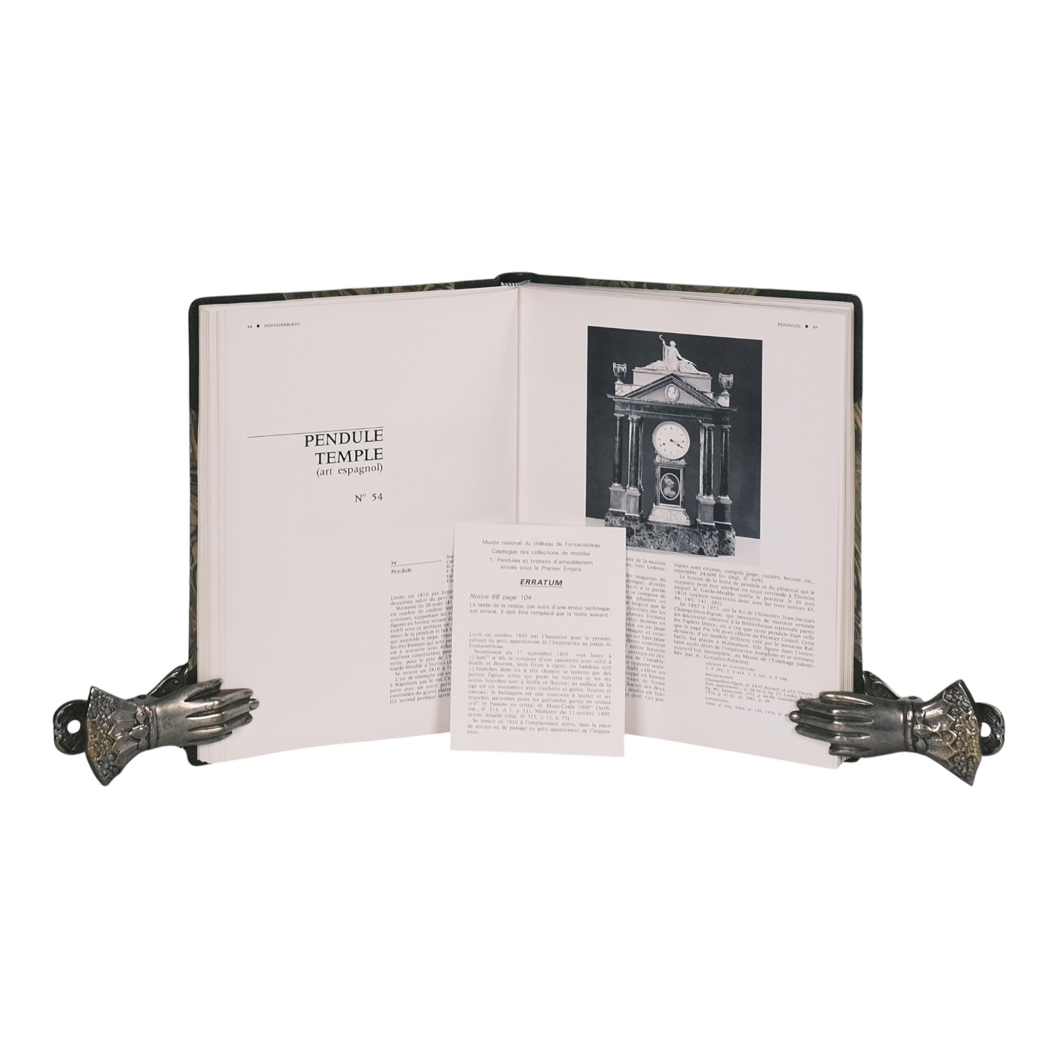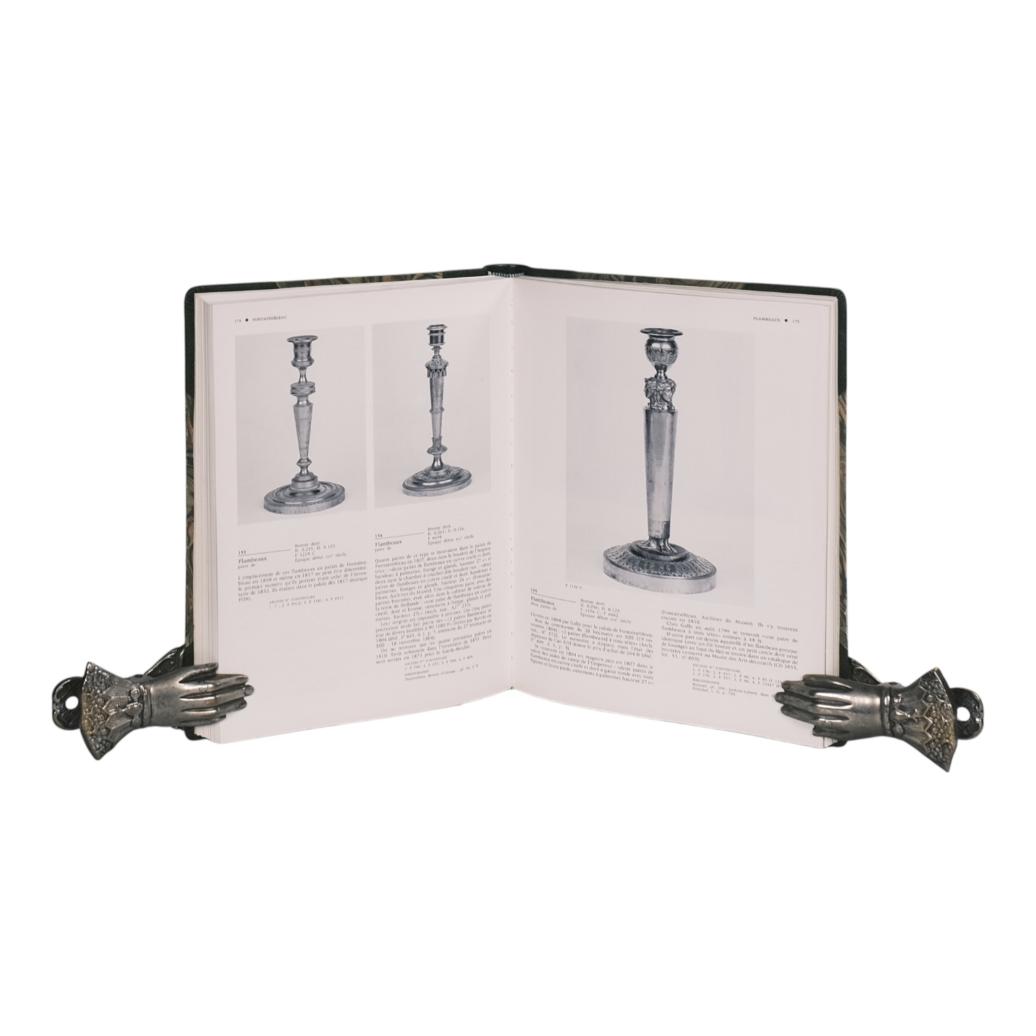 Éditions de la Réunion des musées nationaux, Paris, 1989. 28 x 22 cm. Half leather binding with green morocco spine and corners, marbled boards. 204 pages, many b/w illustrations and 16 plates in colour. Catalogue volume of the furniture collections of the Musée national du Château de Fontainebleau, focused on clocks and furnishing bronzes from the First Empire period. French text. Condition: leather slightly rubbed, small signs of use, very good, see picture. Rare.