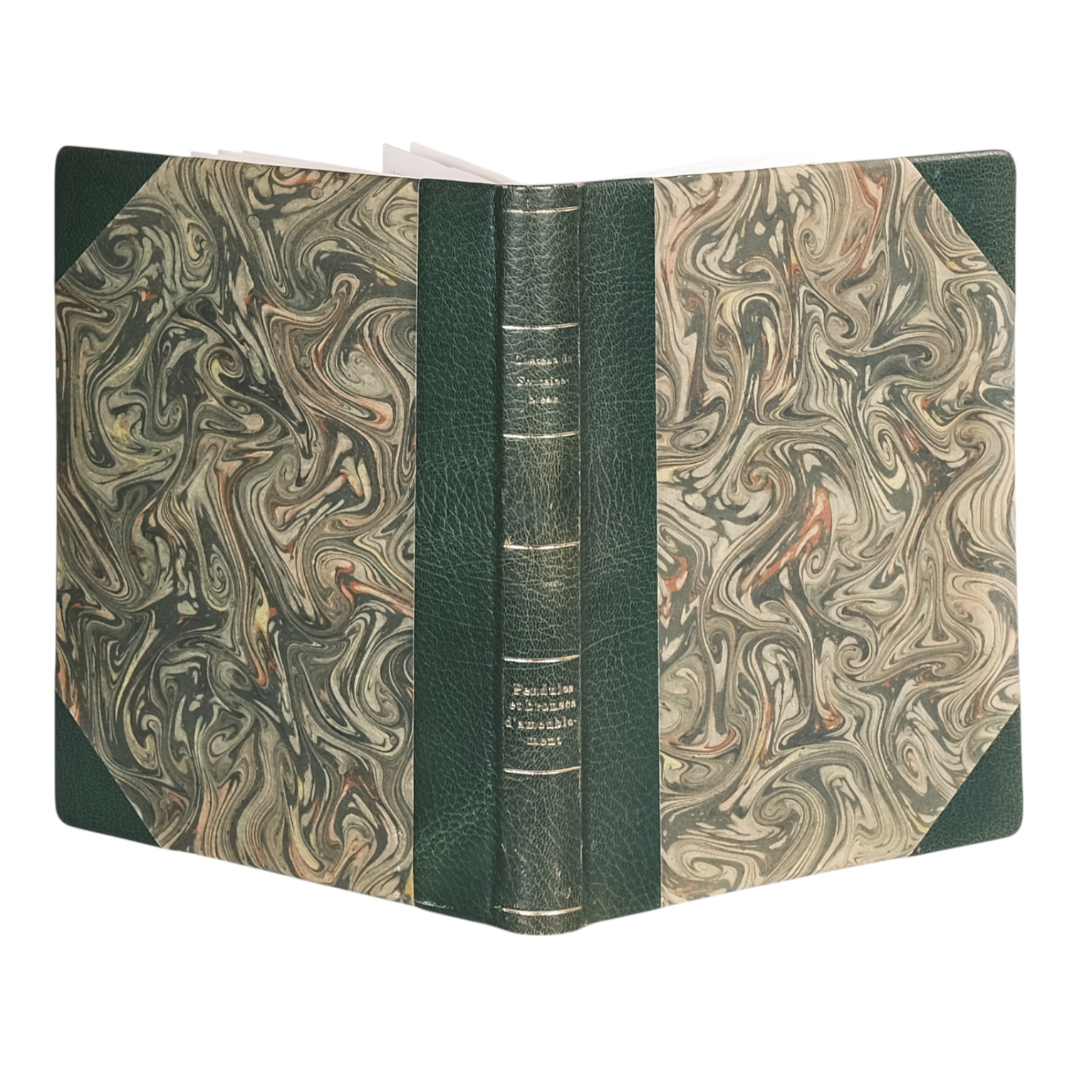 Éditions de la Réunion des musées nationaux, Paris, 1989. 28 x 22 cm. Half leather binding with green morocco spine and corners, marbled boards. 204 pages, many b/w illustrations and 16 plates in colour. Catalogue volume of the furniture collections of the Musée national du Château de Fontainebleau, focused on clocks and furnishing bronzes from the First Empire period. French text. Condition: leather slightly rubbed, small signs of use, very good, see picture. Rare.