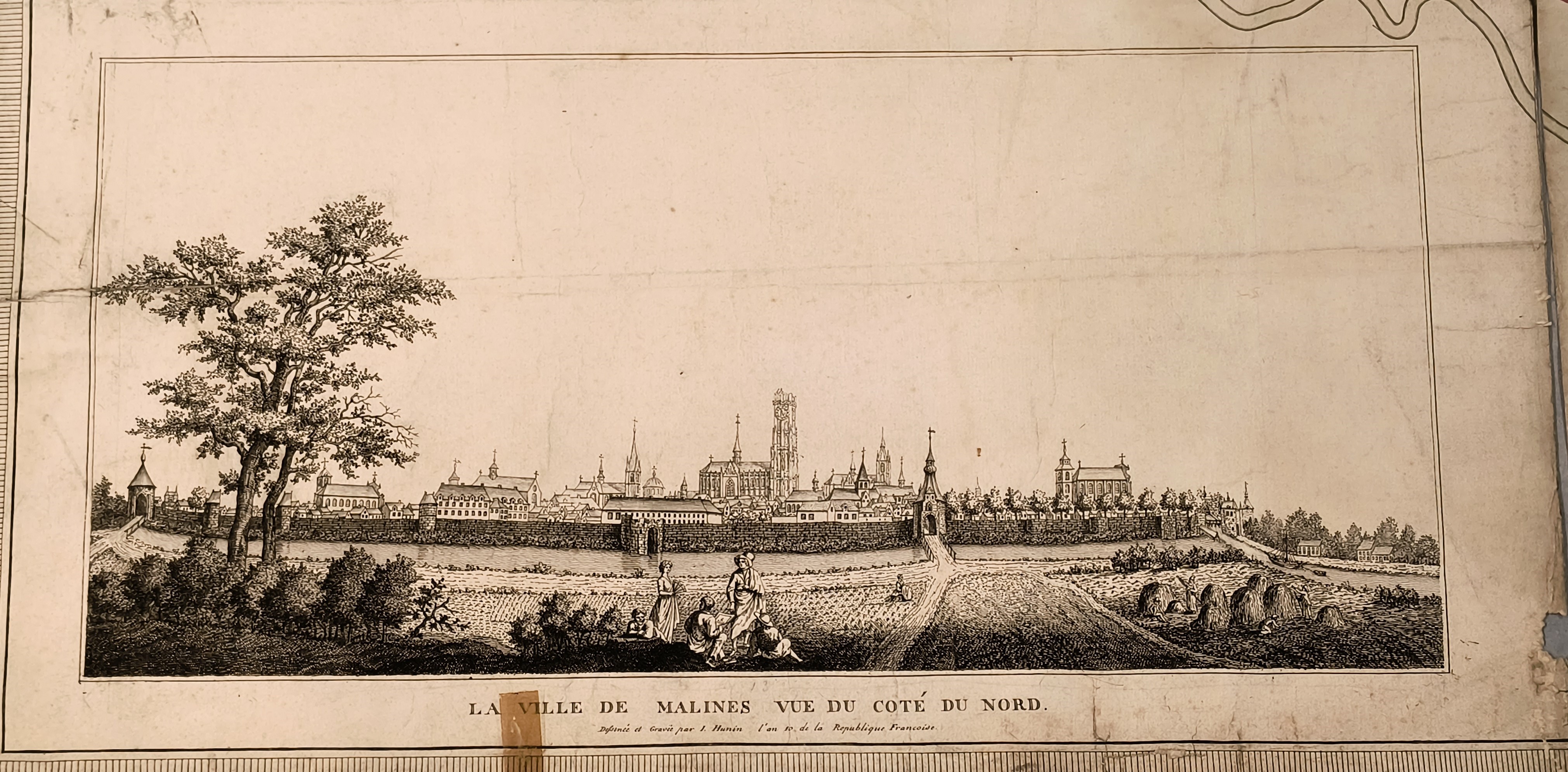# Stadsarchief Mechelen heeft exemplaren van het (7de blad, het) Mechelse stadsplan, maar van de volledige 12-bladige kaart is, voor zover we konden nagaan, nergens nog een exemplaar te vinden.