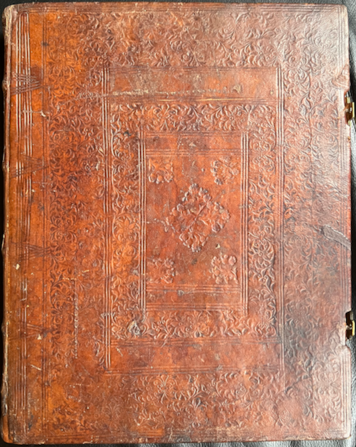 Blindtooled brown sheep with 2 brass clasps. 5 Keys. Edges sprinkled red. Calligraphed music manuscript in red and black with hufnagel notation on a 4-line system, made for the ecclesia curata in Welschnofen close to Bozen, by the Lateran canon and writing master Patritius Gassmayr in Kloster Neustift.