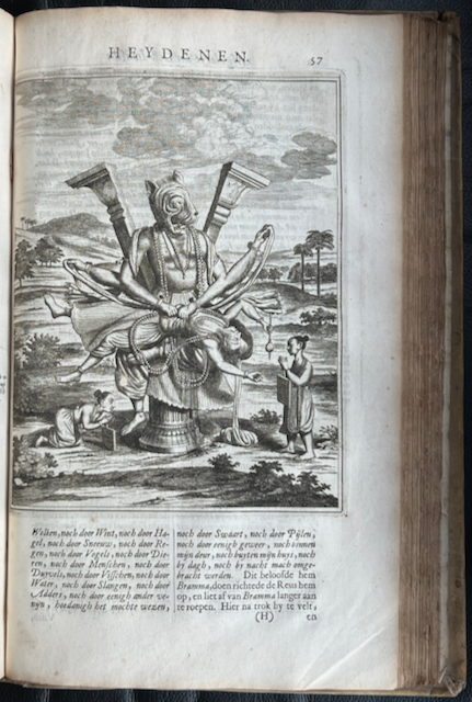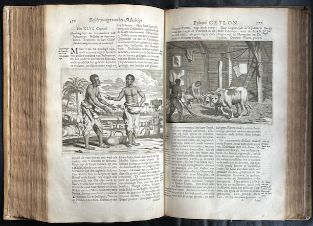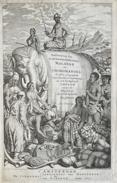 First edition. The book gives extensive information on the Dutch settlements in Southern India, mentioning, among other things, the dreaded Malabar pirates infesting the western coast of India. The second part of the work deals with Ceylon, of which it contains a detailed description. The third part deals with religious practises and old Indian fables.