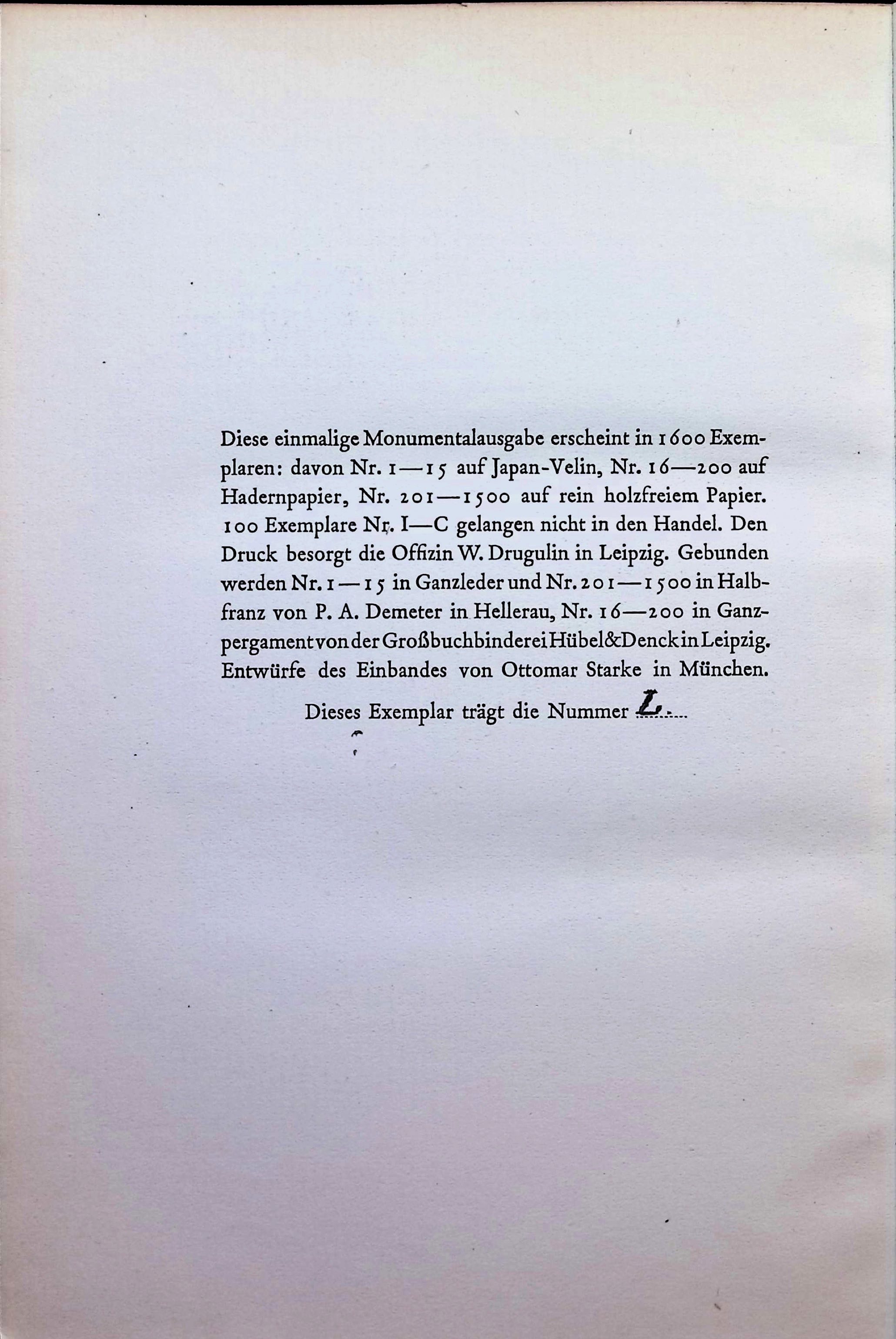 Musarion edition. Edited by Richard Oehler and others. First [to] twenty-third volume. Munich, Musarion Verlag 1920-1929. With four portraits and seven, mostly multi-page facsimiles, one of which is folded. Original half leather volumes each with spine labels with gilded titles. This unique monumental edition is published in 1600 copies, 100 copies numbers I - C are not available for sale, on purely wood-free paper. This copy has the number L - The edition of the work, organized on behalf of Nietzsche's sister Elisabeth Förster-Nietzsche, was supervised by Richard Oehler, Max Oehler and Friedrich Chr. Würzbach. The writings published by Nietzsche himself and his entire estate are presented here in chronological order. - "Another advantage of the Musarion edition is the addition of a youth volume (with a large number of previously unpublished treatises, studies and sketches by the young Nietzsche) as the first and an autobiographical volume as the last in the entire series" (from the foreword by Richard Oehler). - With the name index for the complete edition in volume 21, volumes 22 and 23 with the subject index. - Beautiful series of the impressive edition of Nietzsche's works. 24.5 x 17.5cm. - Covers a little dusty, edges and corners a little rubbed. Overall well preserved complete edition