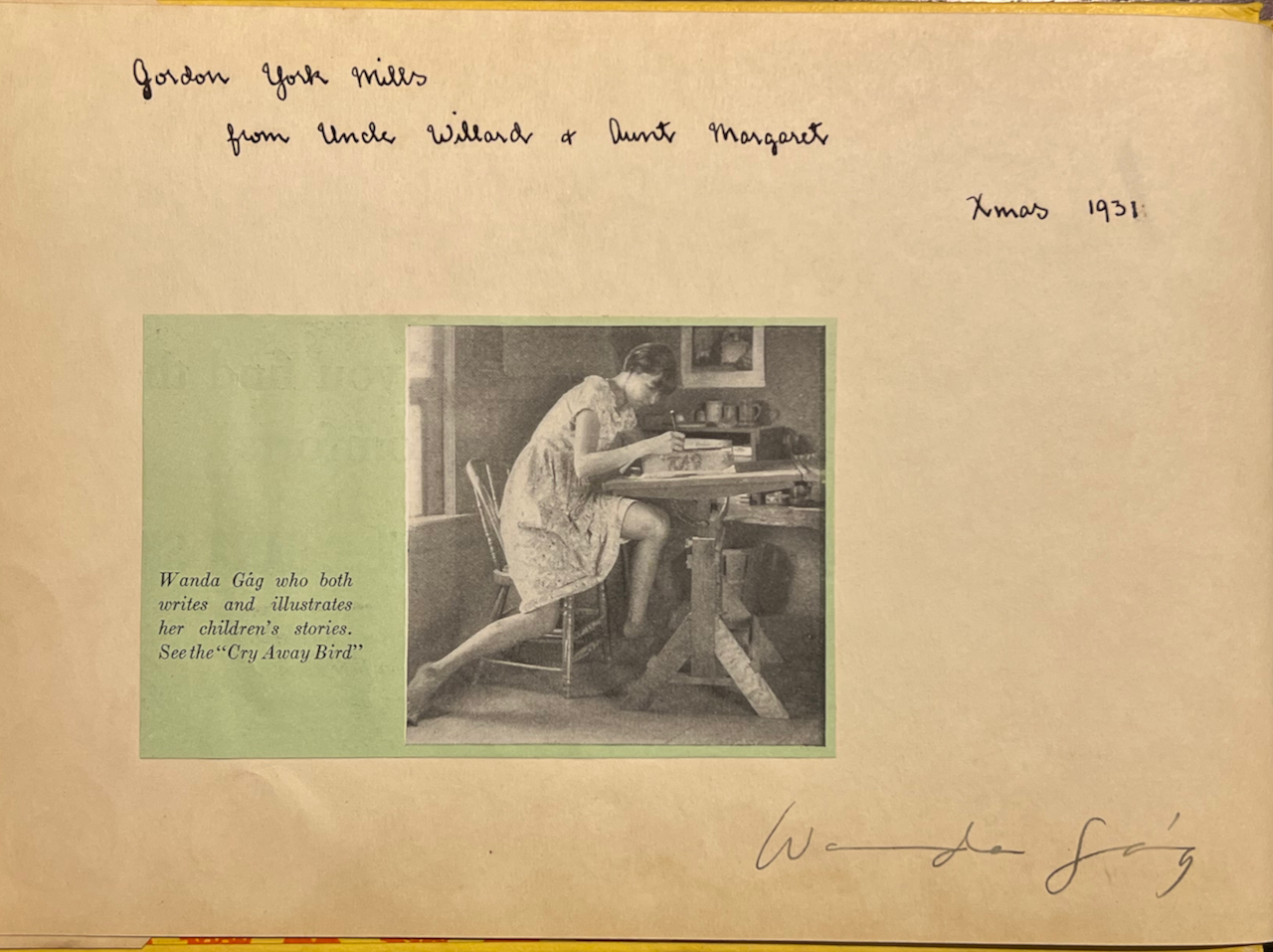 Signed in pen by Wanda Gag on the verso side of the upper fly leaf.