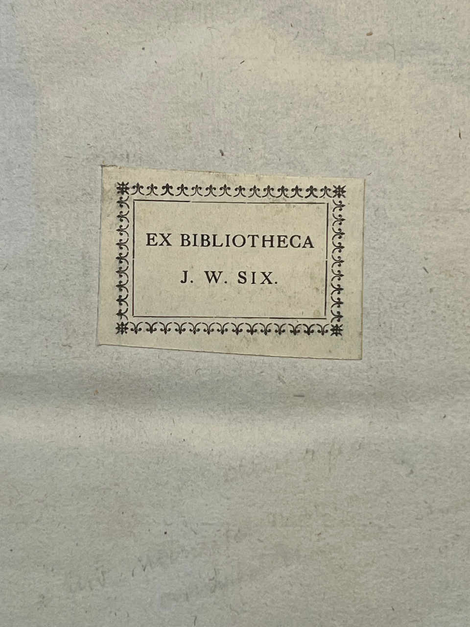 2) Printed Ex libris on first fly leaf: ?Ex bibliotheca J.W. Six?.