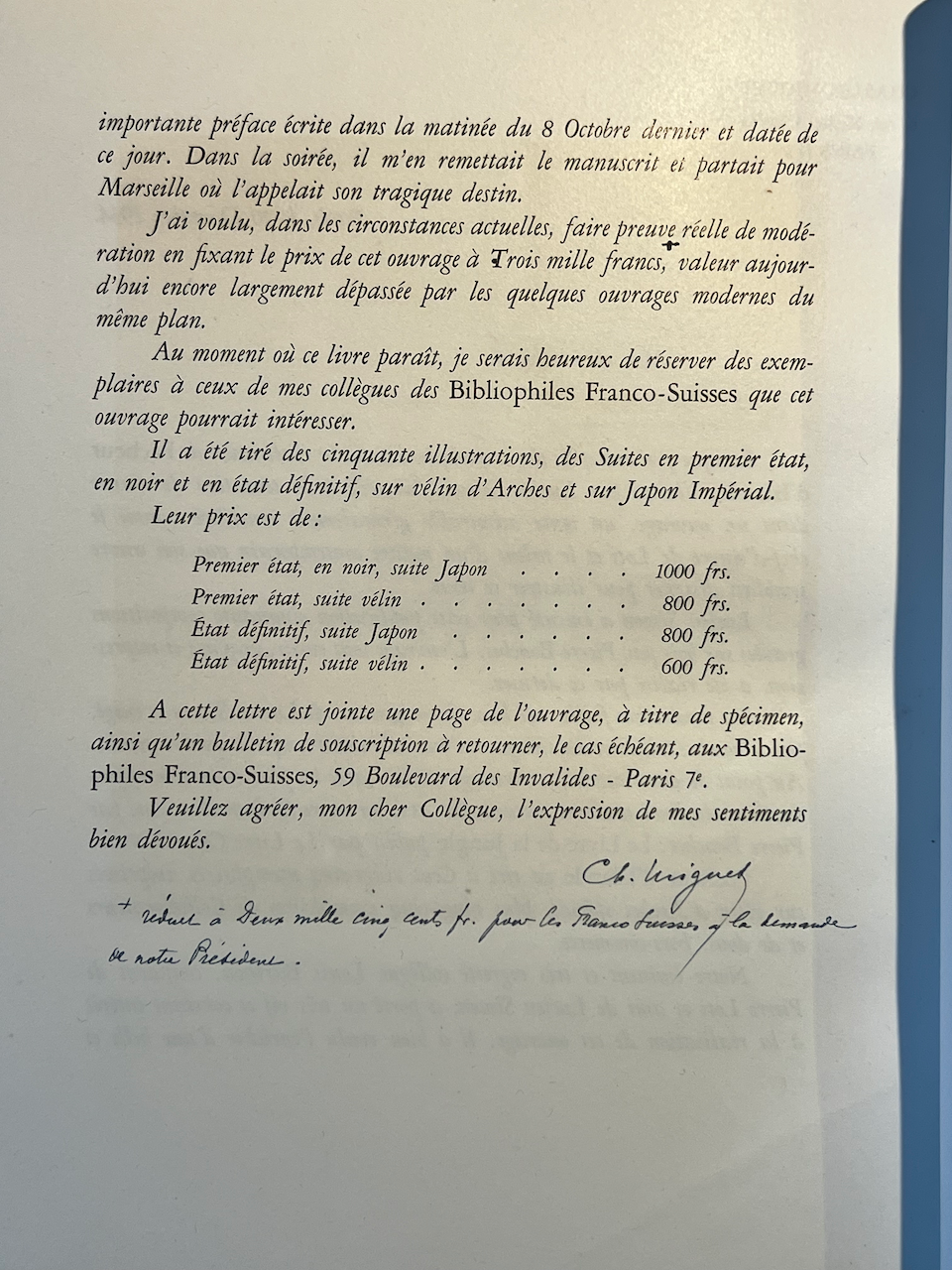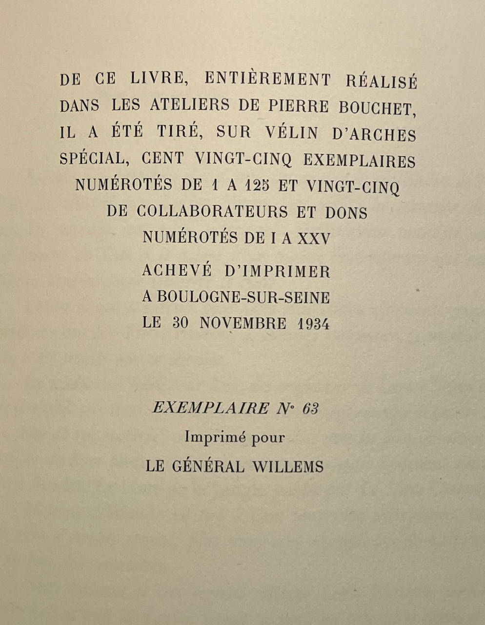 Paris, Aux dépens d'un amateur (=Charles Miguet), 1934. Large 4to. (310 x 245 mm). 4 blank leaves,[XII], 224, [8] pages; prospectus [4] pages; 4 blank leaves.