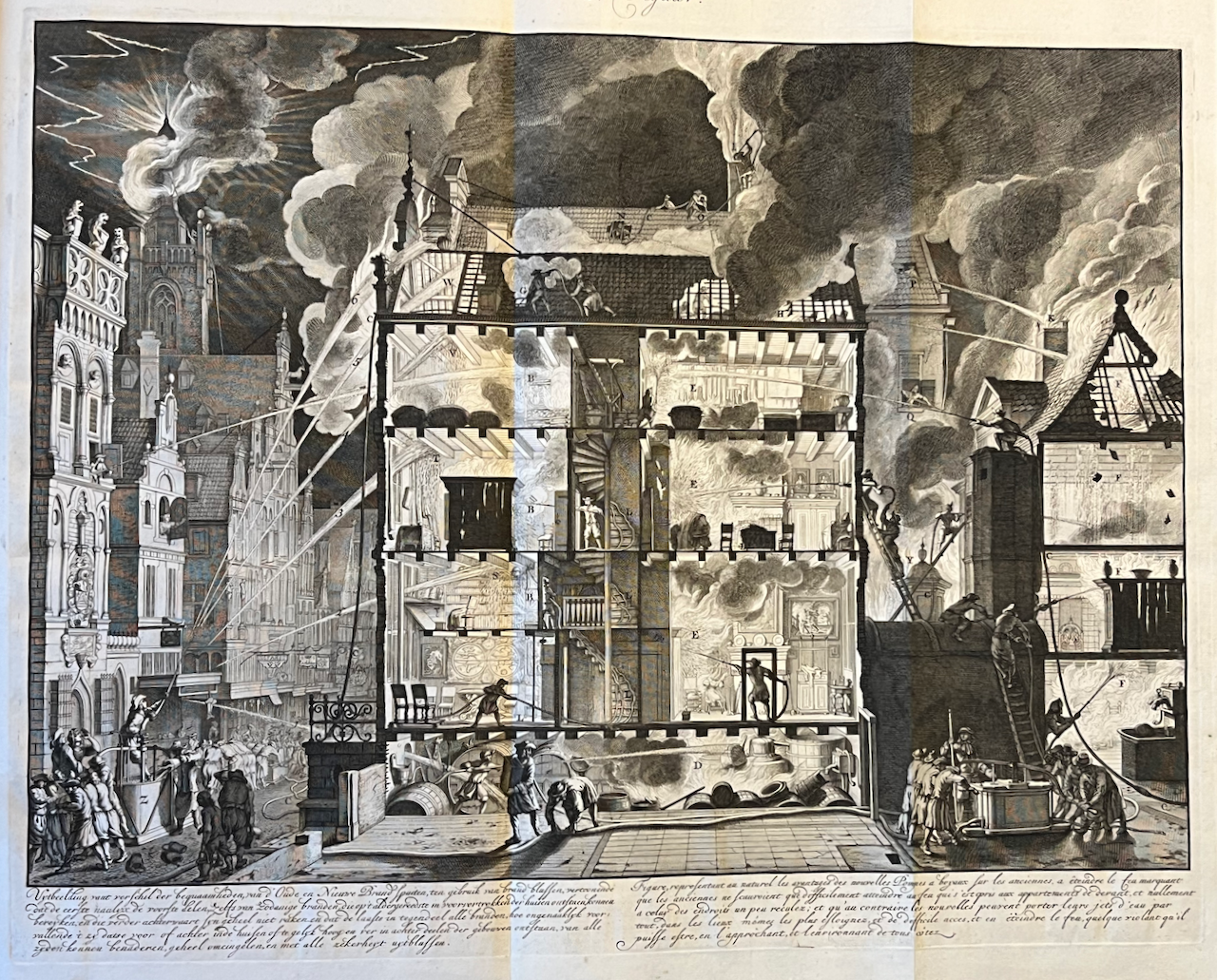 The book describes several fires that occurred in Amsterdam in the period 1652-1684 and the equipment used before the introduction of the new hose-pump. The suggestion of the author is that with this equipment those fires would not have been as severe as they were.