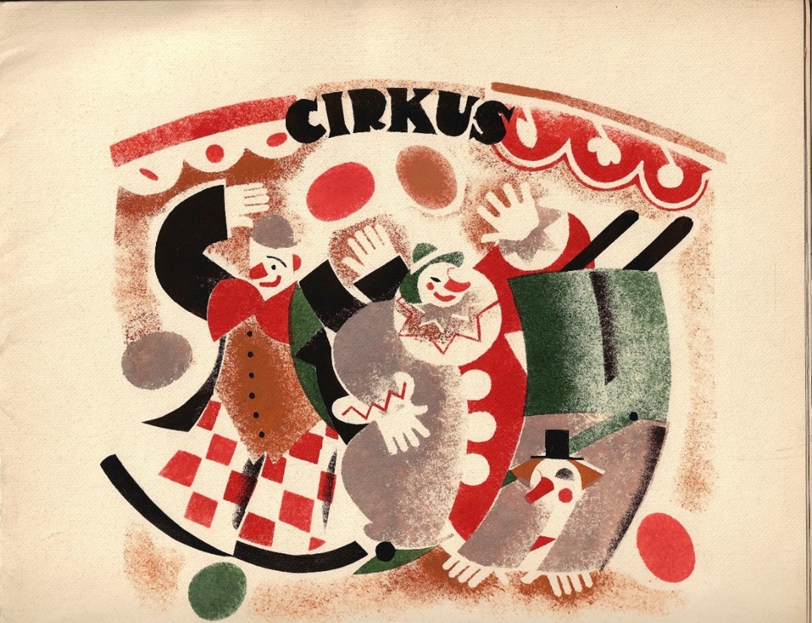 DIT IS EXEMPLAAR 49. Gesigneerd door Elisabeth Ivanovsky In 1933 werkte Elisabeth Ivanovsky af en toe in een drukkerij in Antwerpen om stencils te maken. Ze kreeg de kans om daar haar eigen creatie te publiceren - "Cirkus", een portfolio van zeven sjablonen inclusief omslag - onafhankelijk van de werken die voor de I.S.A.D. (La Cambre) zijn uitgevoerd.