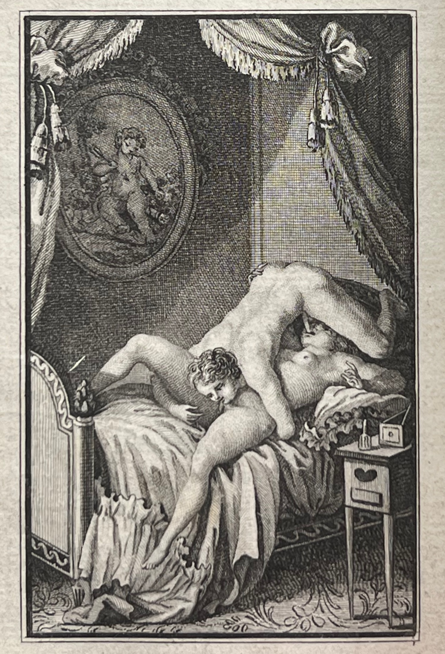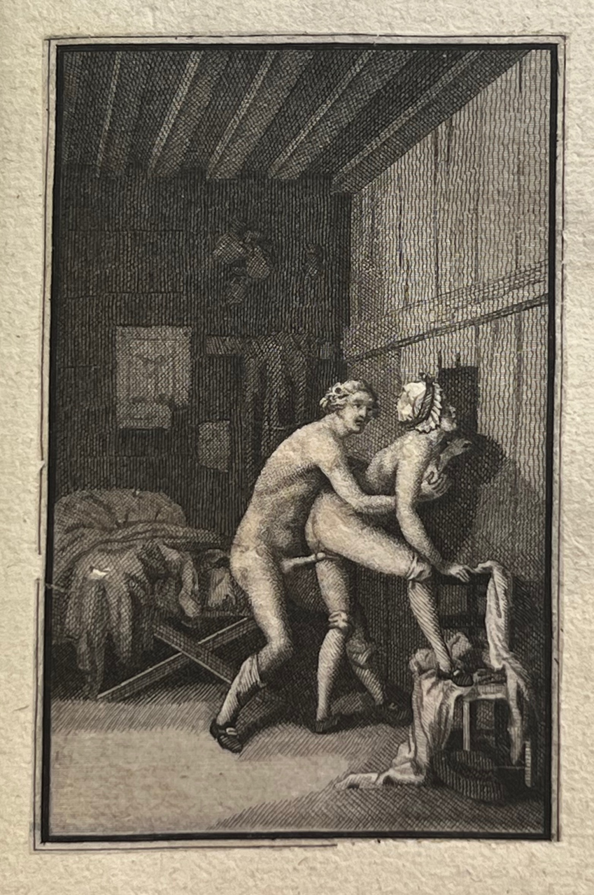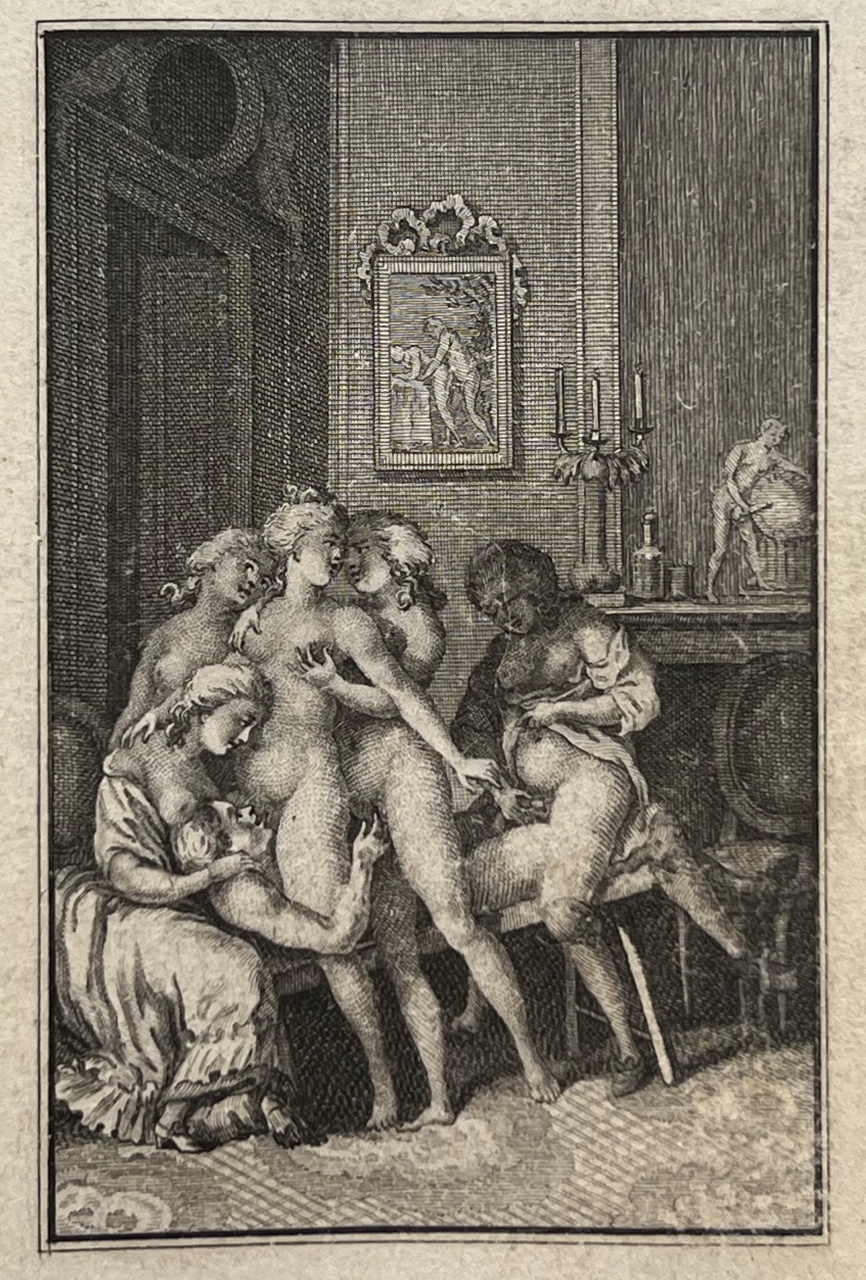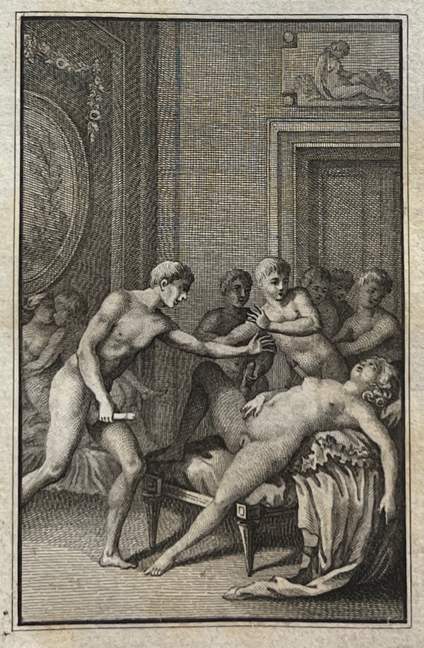 This classic of erotic literature, according to the Bilderlexicon ?the iron core of any collection of erotica?, appeared earlier under the title Histoire de Dom B***, portier des Chartreux, Rome c. 1742 and under the title Histoire de dom Bougre, portier de Chartreux. Earlier editions than this one have more primitive engravings. According to Pia and the Bilderlexicon this edition, with the engravings by Borel and Elluin, is the most sought after. The book was a bestseller and popular with educated people. The German satirist Georg Christoph Lichtenberg (1742?1799) calls it ?ein sehr witziges, wenn auch schmutziges Werk?. Pia declares that these engravings are among the best ever made to illustrate this classic of eroticism.