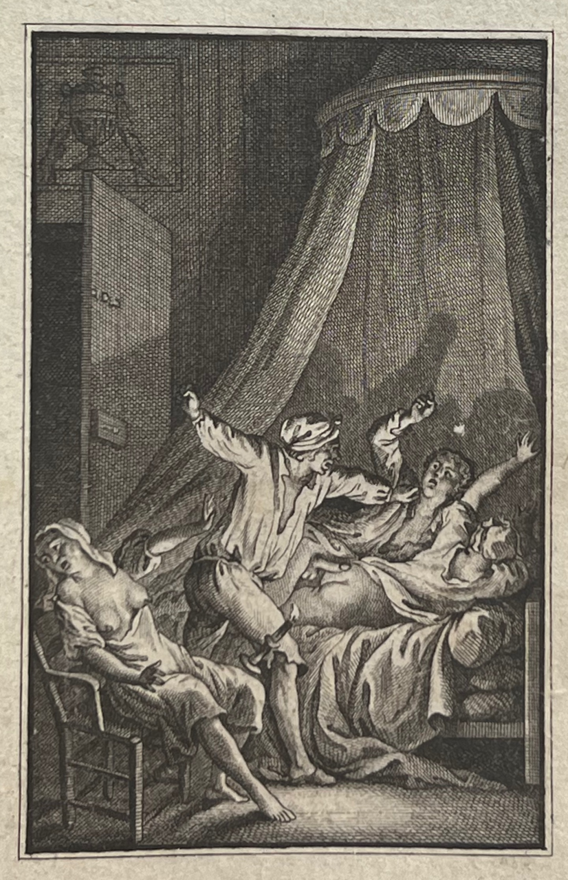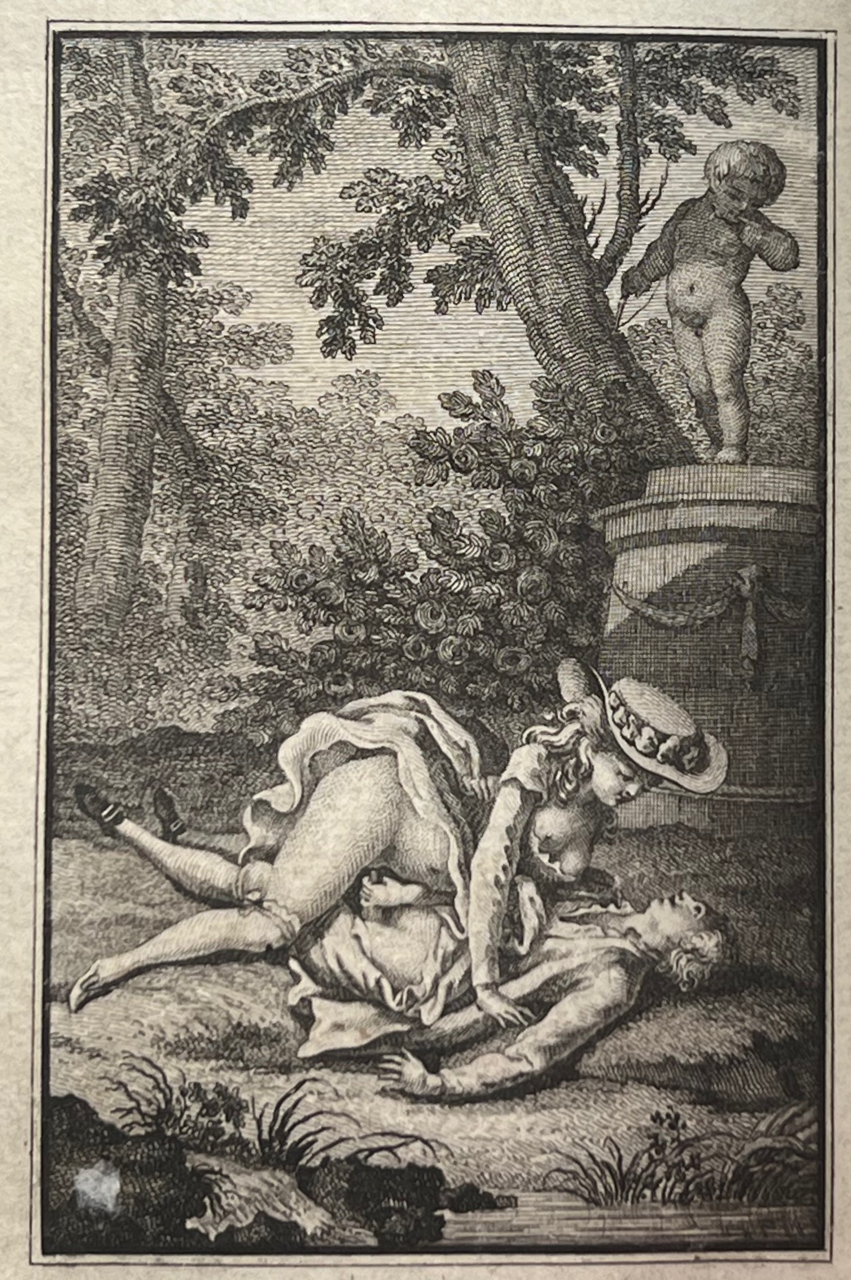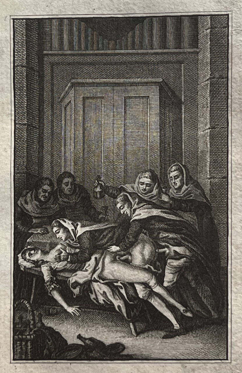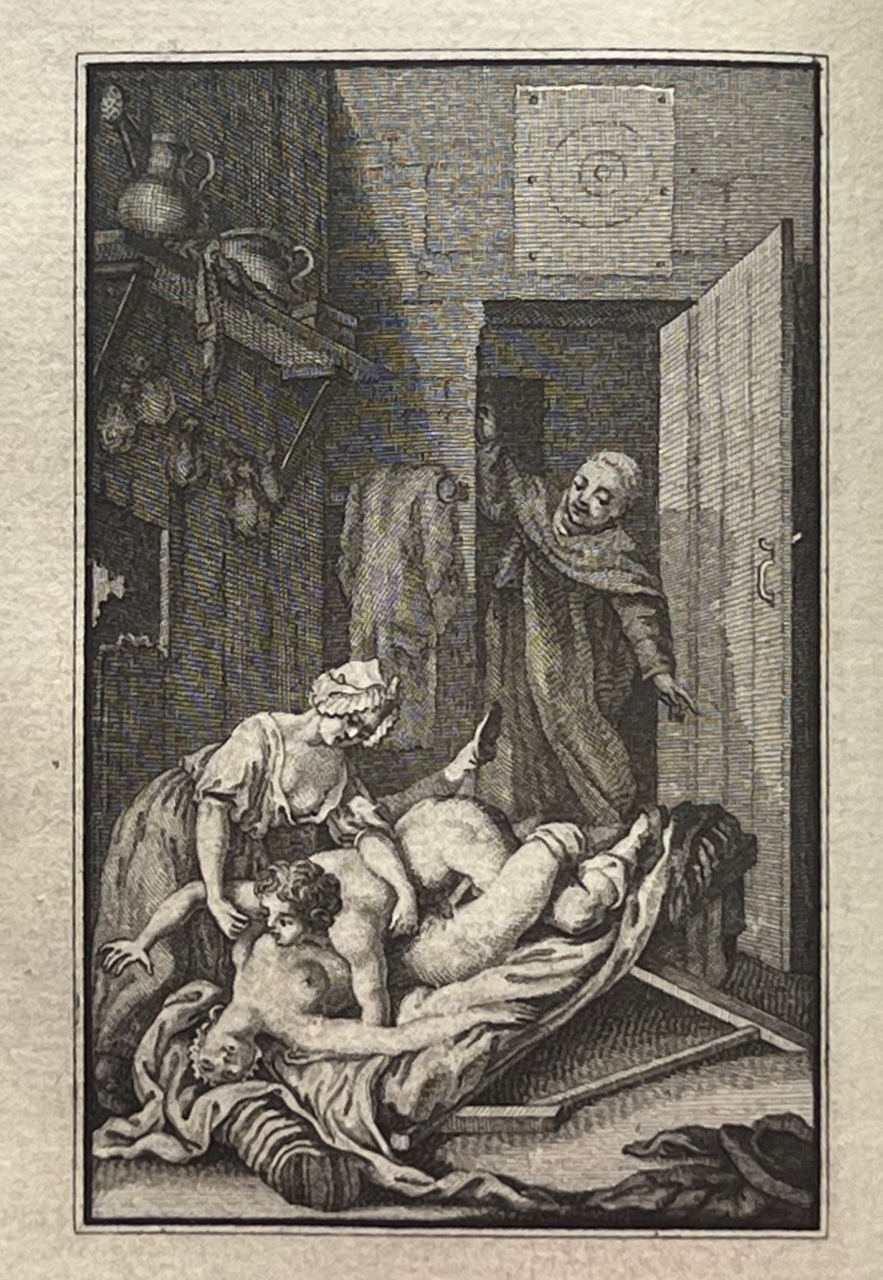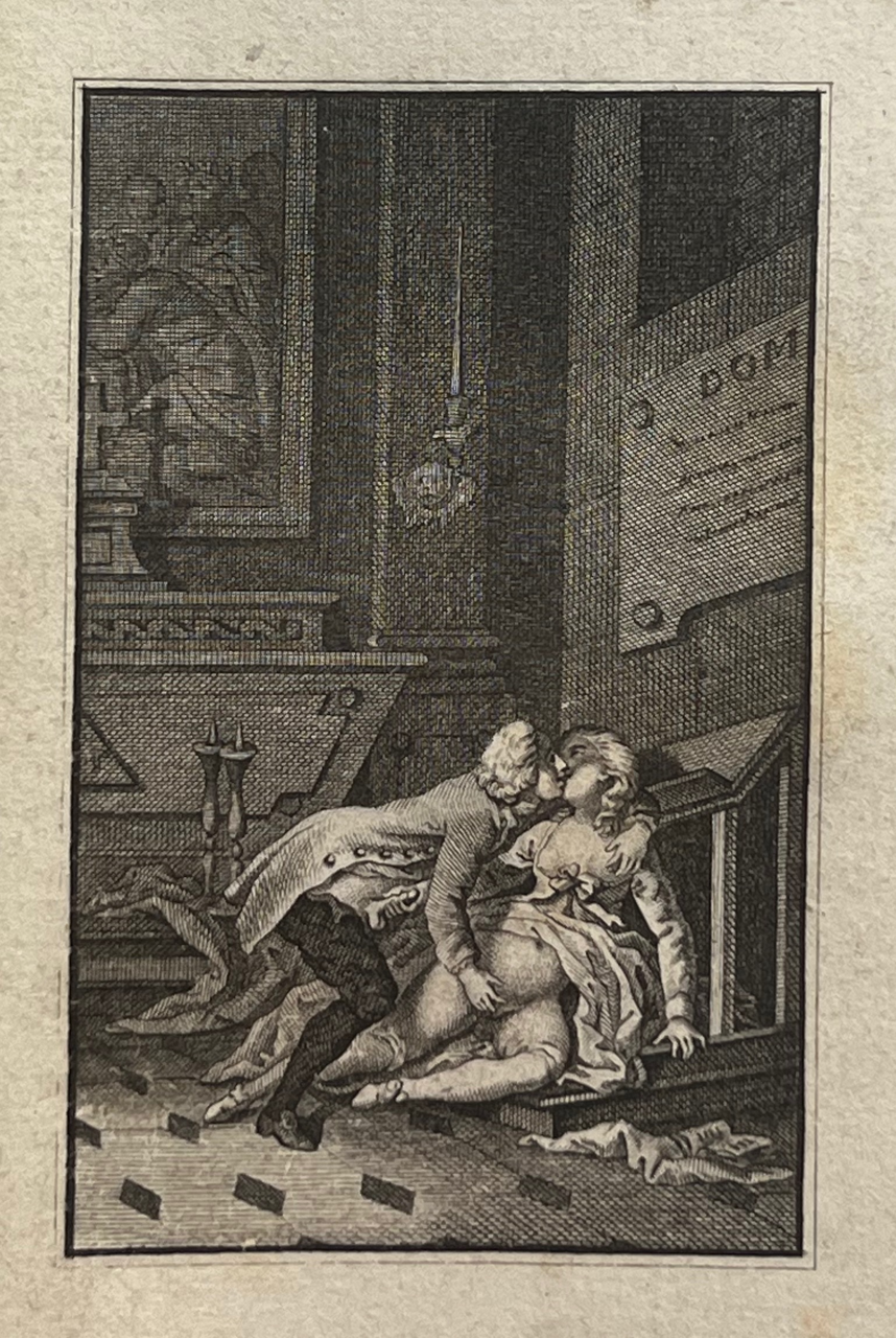 This classic of erotic literature, according to the Bilderlexicon ?the iron core of any collection of erotica?, appeared earlier under the title Histoire de Dom B***, portier des Chartreux, Rome c. 1742 and under the title Histoire de dom Bougre, portier de Chartreux. Earlier editions than this one have more primitive engravings. According to Pia and the Bilderlexicon this edition, with the engravings by Borel and Elluin, is the most sought after. The book was a bestseller and popular with educated people. The German satirist Georg Christoph Lichtenberg (1742?1799) calls it ?ein sehr witziges, wenn auch schmutziges Werk?. Pia declares that these engravings are among the best ever made to illustrate this classic of eroticism.