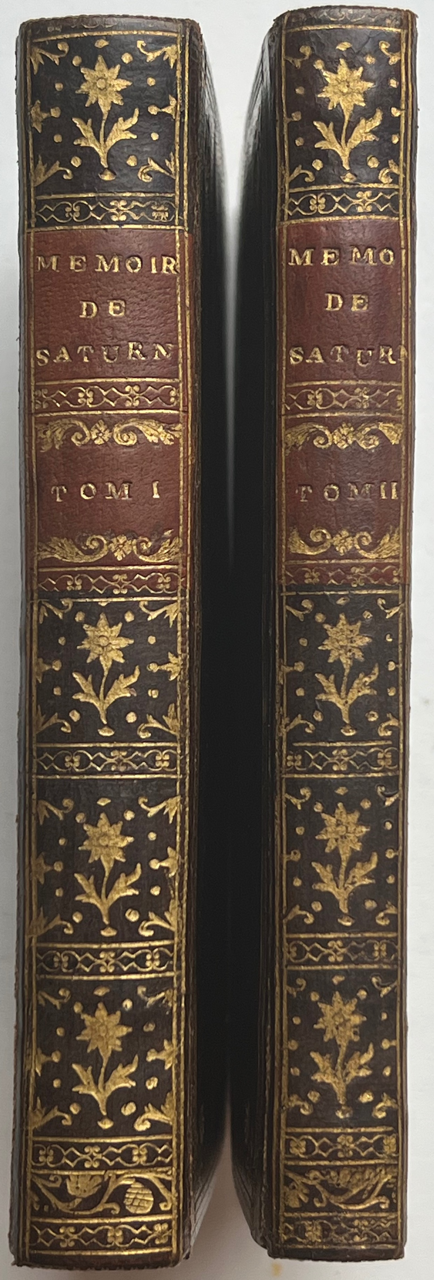 Gervaise de Latouche, Jean Charles]. Mémoires de Saturnin, écrits par Lui-même. A Londres (Paris, Cazin), 1787-1786. Nouvelle édition, corrigée & augmentée, avec figures. 2 volumes. 8vo (157 x 100 mm). [IV], 235, [1]; [IV], 151, [1] p. {?2, A-O8 P8(-P1);