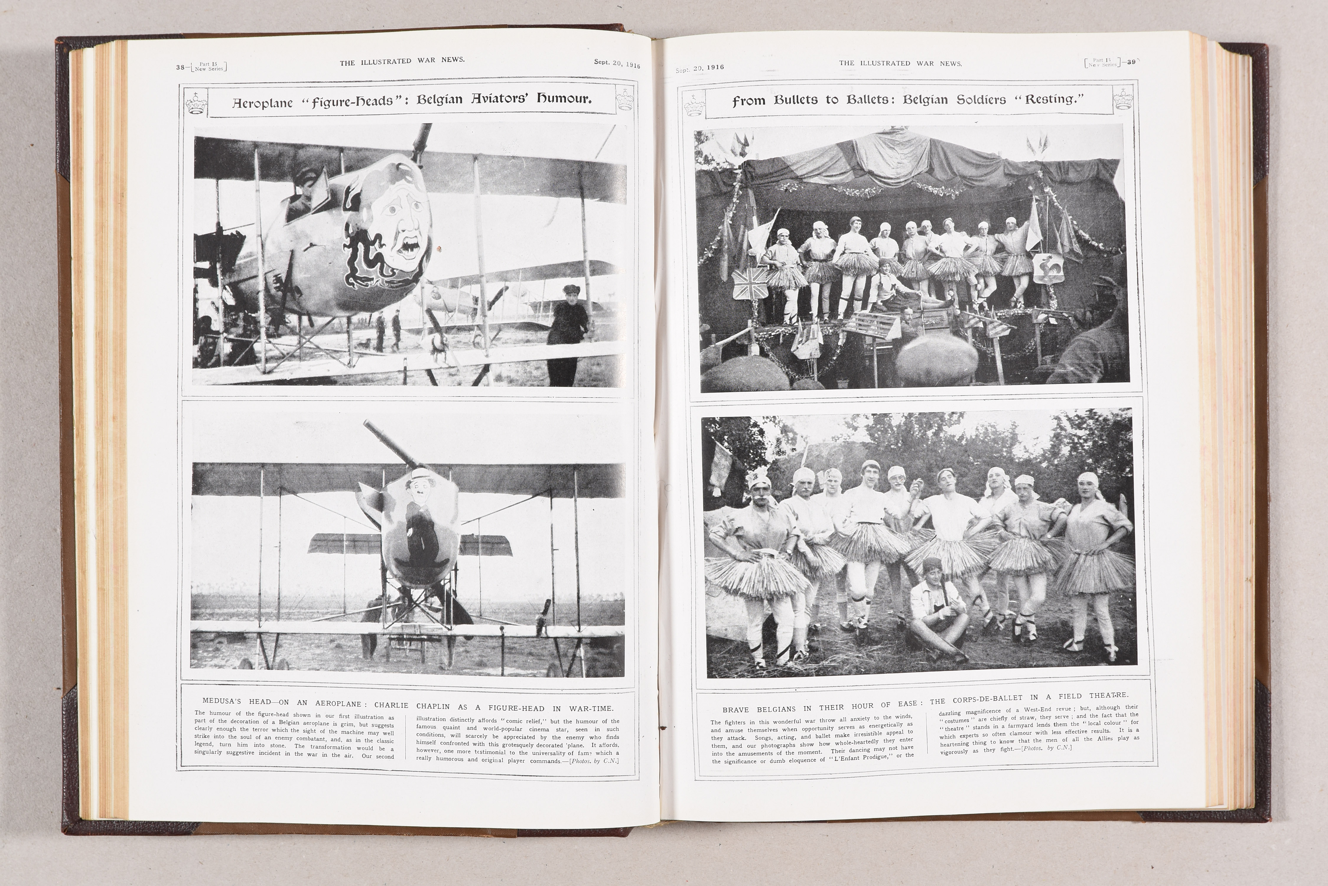 Complete run of this very important and extensive periodical, staunchly patriotic, depicting a wealth of pictorial information on World War I, published from the beginning of the War until April 1918, 7 months before Armistice Day.